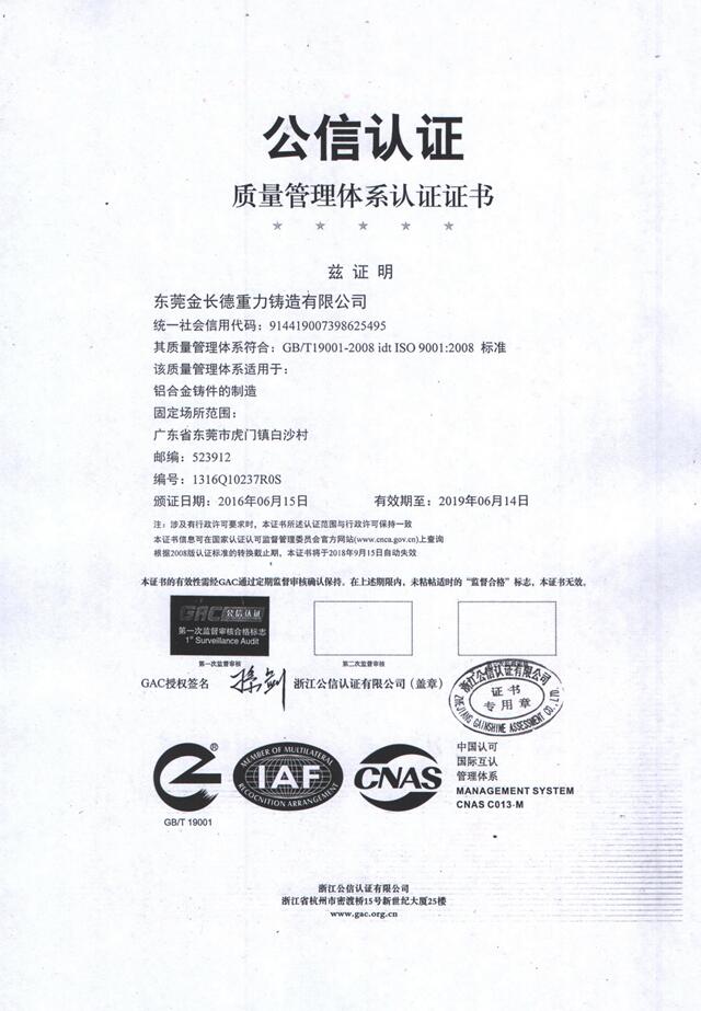 東莞金長德重力鑄造有限公司始建于1990年,是一家專業(yè)從事鋁合金重力鑄造、低壓鑄造、砂型鑄造的企業(yè)。位于廣東省東莞市虎門鎮(zhèn)白沙一村,已經(jīng)有三十多年的歷史,專業(yè)從事于鋁合金鑄件的生產(chǎn)和加工。我司除了自己設計制作各種鑄造類模具外,鑄造和機械加工為一體是我公司的另外一個生產(chǎn)特色。我們可以根據(jù)客戶的要求,來樣,來圖進行模具的設計和產(chǎn)品的生產(chǎn),做出各種毛胚件和成品件。還有自動射芯機,拋丸機,噴砂機,熱處理機器多臺,CNC數(shù)控加工中心,銑床等設備。 我司的產(chǎn)品領域包括了新能源電機、機器人零件、汽摩配件,火車零件,機械零件,馬達風機,空壓機系列,印刷機械零件,木工和醫(yī)療器械零件等類型,產(chǎn)品出口到意大利,法國,美國,英國,以色列,日本,臺灣等國家和地區(qū),深受國內(nèi)外客戶的認可和好評。